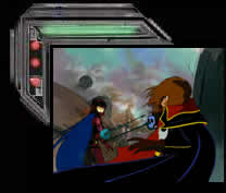 Captain Harlock is a futuristic German Iron Cross pilot, who meets Tochiro, an engineering genius, in American occupied Japan. Except in this cartoon "Japan" is the planet Earth, and the Americans are an alien race called the Illmidias (aliens who suffer from strange facial hair). In case anyone misses this in the introduction, the anime takes you back in time to meet their ancestors during WWII to make sure you get it. With no ship and no purpose, Harlock walks the war torn streets of Planet Earth, "We’re defeated, yet we still exist," until he hears the voice of "Free Arcadia", a pirate radio station headed by his only love, Maya, who brings hope to disgruntled citizens. After hearing his love on the radio, he searches the streets until he finds her, but the Illmidas find her first. And in a gun battle, Maya is fatally injured (she spends the rest of the cartoon dying) and Harlock loses an eye.