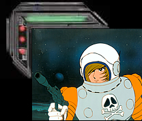 Captain Harlock is a futuristic German Iron Cross pilot, who meets Tochiro, an engineering genius, in American occupied Japan. Except in this cartoon "Japan" is the planet Earth, and the Americans are an alien race called the Illmidias (aliens who suffer from strange facial hair). In case anyone misses this in the introduction, the anime takes you back in time to meet their ancestors during WWII to make sure you get it. With no ship and no purpose, Harlock walks the war torn streets of Planet Earth, "We’re defeated, yet we still exist," until he hears the voice of "Free Arcadia", a pirate radio station headed by his only love, Maya, who brings hope to disgruntled citizens. After hearing his love on the radio, he searches the streets until he finds her, but the Illmidas find her first. And in a gun battle, Maya is fatally injured (she spends the rest of the cartoon dying) and Harlock loses an eye.
