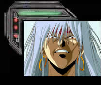 "Tenku Senki Shurato" was released in 1989. I don’t think it was released in the US. Sixteen-year-old martial-arts rivals and friends Shurato and Gai disappear in the middle of a tournament. Unbeknownst to them they aren’t really everyday people. When they disappeared they were brought back to their original forms, pseudo-Hindu-Buddhist warrior gods, and transported to a pseudo-Hindu-Buddhist world called Tenkuukai. All is not well in Tenkuukai; very soon they’ll be invaded by the Asura armies (hordes of ugly bad guys headed by Shiva). To protect Hindu-Buddhist Land, the all-powerful Vishnu (now a bodacious female babe, instead of a blue guy) has summoned Gai and Shurato to join the armored warrior god team known as the Hachibushu. Unknown to Vishnu there is a traitor in her midst. Her right hand man, Indrah, has been taken over by dark Sohma (the dark side). Indrah turns Gai into a homicidal maniac bent on destroying Shurato, and he turns Vishnu into stone. Then, using his position, Indrah takes over Tenkuukai. Indrah convinces half the Hachibushu that Vishnu was turned to stone by Shurato. The other half join Shurato to stop Indrah’s nefarious schemes. Split in two, the Hachibushu fight amongst themselves as Indrah prepares to hand Tenkuukai over to the Asura! Will Shurato be able to break Indrah’s control over Gai, save Vishnu, and bring peace to Tenkuukai before the Asura attack? I don’t know. I never got to the end. The downloadable episodes stopped and I haven’t bought the Hong Kong bootleg set. The plot is average Shonen (Boy) Anime. "Tenku Senki Shurato" features pretty people beating the heck out of each other. It’s from the late eighties, so it has become somewhat obscure, but it has a small fan group among Otaku. Gai is cool; when he goes bad, he mugs EVILLY.