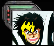 "Tenku Senki Shurato" was released in 1989. I don’t think it was released in the US. Sixteen-year-old martial-arts rivals and friends Shurato and Gai disappear in the middle of a tournament. Unbeknownst to them they aren’t really everyday people. When they disappeared they were brought back to their original forms, pseudo-Hindu-Buddhist warrior gods, and transported to a pseudo-Hindu-Buddhist world called Tenkuukai. All is not well in Tenkuukai; very soon they’ll be invaded by the Asura armies (hordes of ugly bad guys headed by Shiva). To protect Hindu-Buddhist Land, the all-powerful Vishnu (now a bodacious female babe, instead of a blue guy) has summoned Gai and Shurato to join the armored warrior god team known as the Hachibushu. Unknown to Vishnu there is a traitor in her midst. Her right hand man, Indrah, has been taken over by dark Sohma (the dark side). Indrah turns Gai into a homicidal maniac bent on destroying Shurato, and he turns Vishnu into stone. Then, using his position, Indrah takes over Tenkuukai. Indrah convinces half the Hachibushu that Vishnu was turned to stone by Shurato. The other half join Shurato to stop Indrah’s nefarious schemes. Split in two, the Hachibushu fight amongst themselves as Indrah prepares to hand Tenkuukai over to the Asura! Will Shurato be able to break Indrah’s control over Gai, save Vishnu, and bring peace to Tenkuukai before the Asura attack? I don’t know. I never got to the end. The downloadable episodes stopped and I haven’t bought the Hong Kong bootleg set. The plot is average Shonen (Boy) Anime. "Tenku Senki Shurato" features pretty people beating the heck out of each other. It’s from the late eighties, so it has become somewhat obscure, but it has a small fan group among Otaku. Gai is cool; when he goes bad, he mugs EVILLY.