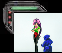 "La Blue Girl" is three Hentai OVA series (amounting to a total of 10 episodes) from 1992-94. This early 1990s series was then resurrected for four more episodes from 2001-2002. There have also been some live action movies, and some video games. All of it is based on a 1989-1992 Manga. I’ve only seen the 2-episode 2nd "La Blue Girl" OVA, and the 3rd OVA, the 4-episode "Lady Blue". The cels here, save one, are from "Lady Blue", a tale of 400 year old betrayed, tragic love ...and tentacles. In the world of "La Blue Girl" there are 3000 realms (I guess