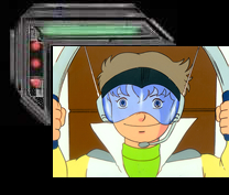 With Dr. Bridger gone, GRIP’s cyborg subordinates, the Skeletrons, are sent to capture and interrogate his son, Nathan (Kenta)… for planted within Nathan’s own subconscious mind are the secrets of teleportation. Targeted at his father’s funeral, Nathan is saved by Bridger’s friend and associate Dr. James Chagall (Captain Sabalas). Dr. Chagall brings Nathan to Macron Base to meet his new protectors, the three-man Macron team: stalwart James Templar (Shingo Hojo), cocky Scott Cutter (Killy Gagly), and spunky Kathy Jamison (Remy Shimada). Together with the aid of their giant robot, Max Star (GoShogun, of course!), they are humanity’s best hope at fighting back the fiendish, foul forces of Dark Star (Neo Neros).